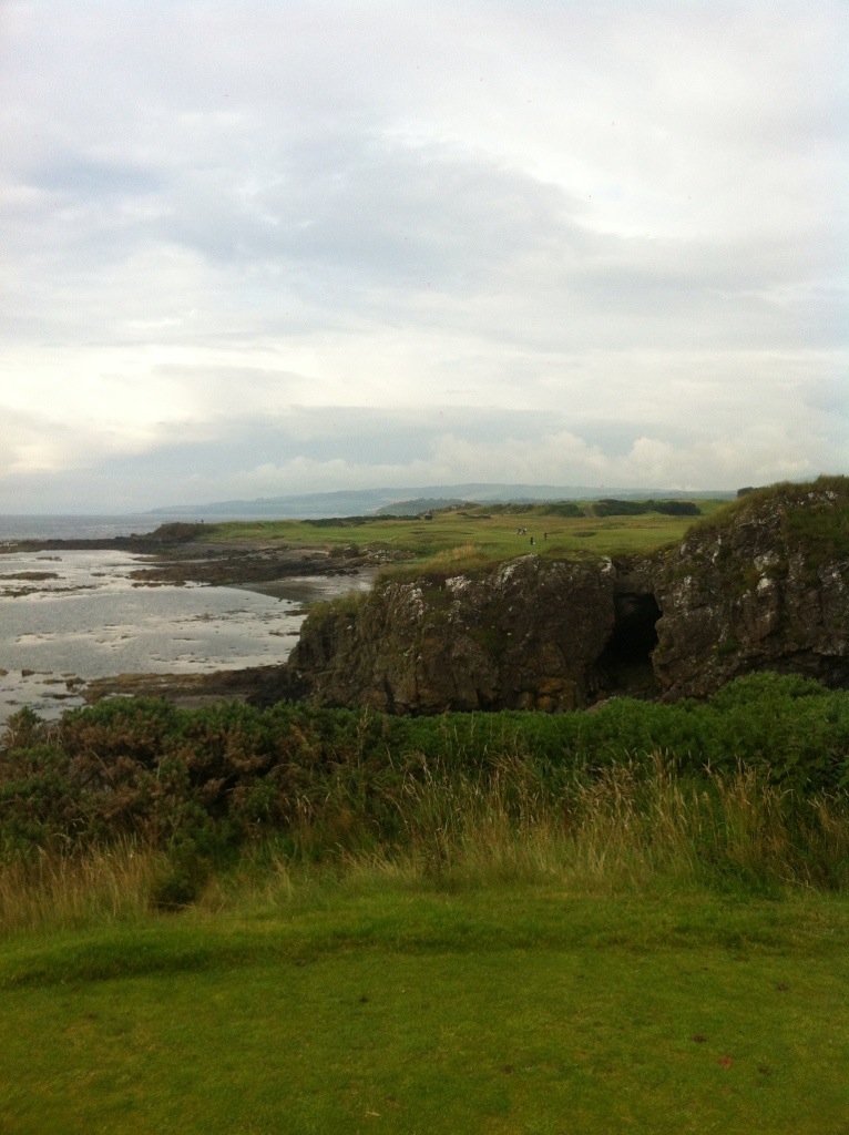 On day 1 we played the Kintyre course. Most of the fairways are lined with gorse bushes and as some of the other guys noted “they may as well have been Out of Bounds markers!”. It was very tough off the tee and the fact that we played the front 9 in sideways rain and then got onto the back 9 when the rain stopped but the wind got up was……..educational!